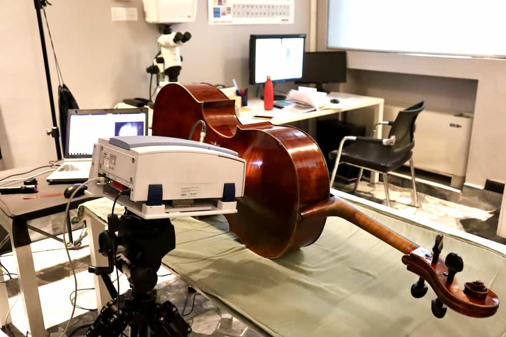 日ごろから共同で解析などを行っているクレモナの博物館にこの楽器を発見した話をすると、今後のデータベースの為にもぜひ解析したいとの協力を得て、パヴィア大学のチームと楽器のニス成分を詳細に分析し、ミラノ工科大学のチームと音響特性についても、綿密な測定を実施しました。博物館にとってもガダニーニの楽器を科学的に解析する貴重な機会となり、研究資料としての価値も高いプロジェクトとなりました。その成果については、いずれまとめて発表しようと思っています。